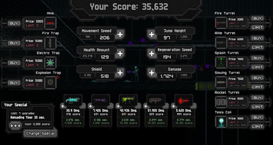 of its regeneration and armor). You also can increase the damage of a specific weapon or the entire robot damage. - BuildingsAs it was written above, turrets and traps can be purchased in the shop. All types of buildings are